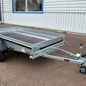 2300S är den största modellen i serie 2000, byggd för att rymma mer med sina förstärkta sidopaneler och 40 cm höga sidor. Det är en bromsad släpvagn, vilket ger ökad säkerhet och kontroll vid körning, särskilt vid transport av tyngre last. Tack vare fällbara fram- och baklämmar blir det enkelt att lasta längre gods, och tippfunktionen gör både lastning och lossning smidigare – perfekt för mindre maskiner som gräsklippare eller skotrar. För extra stabilitet har släpet ett stödhjul som standard, och invändiga surrningsöglor ser till att lasten hålls säkert på plats. Den bakre lämmen är dessutom klädd i slitstark aluminiumdurk, vilket ger bättre grepp vid lastning och en hållbar yta med lång livslängd.